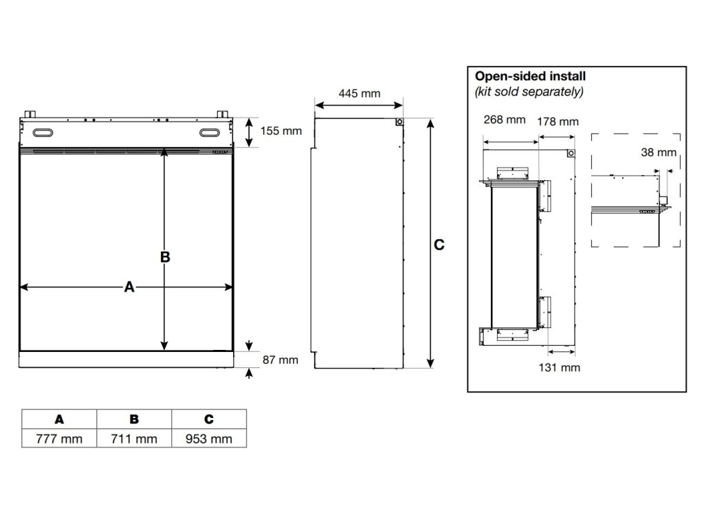 Krbová vložka s efektom plameňa Optiflame® LED je určená na zabudovanie do steny alebo obstavby. Súprava príslušenstva Trim kit (154,- €) umožňuje rohové a trojstranné vyhotovenie. Ohnisko je tvorené kryštálmi a polienkami s pulzujúcim osvetlením. Plameň nezávislý od kúrenia vám umožní používať krb po celý rok, dokonca aj v horúcich dňoch. Užite si oheň, kedykoľvek chcete. Kúrenie môžete kedykoľvek zapnúť alebo vypnúť. Patentovaná technológia Comfort$aver ponúka energeticky účinný ohrievač dosahujúci až 11% úsporu nákladov na energiu. Funguje na princípe vykúrenia miestnosti a pred dosiahnutím požadovanej teploty automaticky zníži výkon. Spotreba bez ohrevu je 24 W. Napájací kábel má dĺžku 1 m.