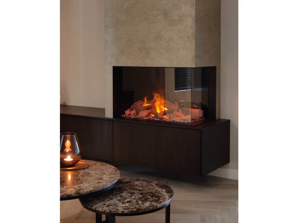 E-Matrix je elektrický krb s modernou LED technológiou, čo znamená nízku spotrebu. Ohnisko je tvorené polienkami, kamienkami a kryštálmi s viacfarebným LED osvetlením a so zvukovým efektom praskania dreva. Efekt plameňa je tvorený vodnou parou, preto sa krb pripája na rozvod vody so spotrebou 0,15 l/h (alebo sa dá dokúpiť zásobník vody). Intenzita vodnej pary sa dá ovládať. Efekt plameňa je možné použiť nezávisle na ohrievaní. Ovládanie pomocou App alebo bluetooth diaľkovým ovládaním poskytuje maximálne pohodlie. Ku krbu sa dá dokúpiť, horné a spodné podsvietenie, antireflexné (bezodrazové) sklo a čierny keramický zadný panel. Vyskladajte si krb podľa vlastných predstáv.