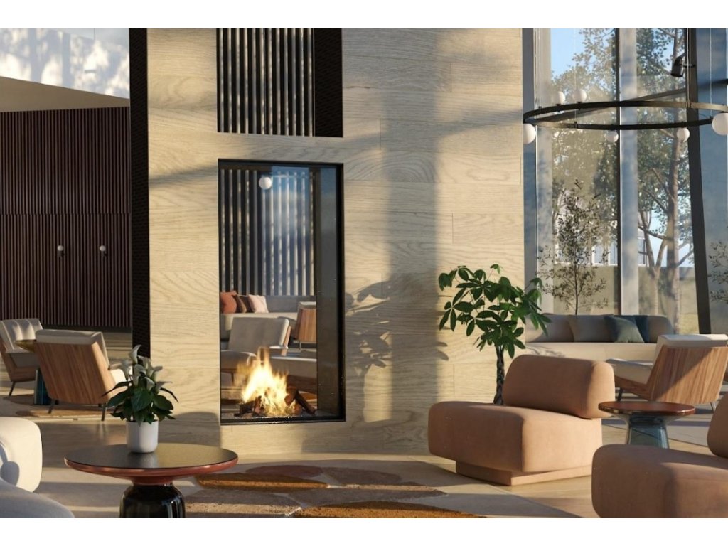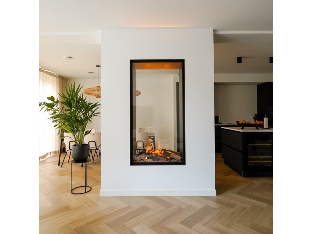 E-Matrix Vertical je vstavaný tunelový elektrický krb s modernou LED technológiou, čo znamená nízku spotrebu. Voľne víriace „plamene“ tvorí vodná hmla a LED svetlá. Dodáva sa s polienkami, kamienkami alebo kryštálmi a so zvukovým efektom praskania dreva. Efekt plameňa je tvorený vodnou parou, preto sa krb pripája na rozvod vody so spotrebou 0,15 l/h (alebo sa dá dokúpiť zásobník vody). Intenzita vodnej pary sa dá ovládať. Efekt plameňa je možné použiť nezávisle na ohrievaní. Ovládanie pomocou App alebo bluetooth diaľkovým ovládaním poskytuje maximálne pohodlie. Ku krbu sa dá dokúpiť spodné podsvietenie za 474,- € pre umocnenie nálady z plameňov.