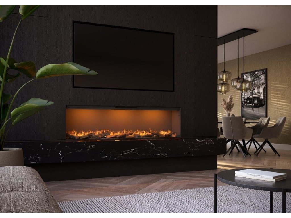 E-Slim je vstavaný čelný elektrický krb s horným podsvietením modernou LED technológiou. Môže byť inštalovaný aj v kúpeľni. Voľne víriace viacfarebné „plamene“ tvorí vodná hmla a LED svetlá. Dodáva sa s polienkami. Efekt plameňa je tvorený vodnou parou, preto sa krb pripája na rozvod vody so spotrebou 0,3 l/h (alebo sa dá dokúpiť čerpadlo na pripojenie zásobníka vody). Intenzita vodnej pary sa dá ovládať. Efekt plameňa je možné použiť nezávisle na ohrievaní. Ovládanie pomocou App alebo bluetooth diaľkovým ovládaním poskytuje maximálne pohodlie.