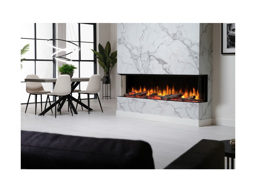 Zabudovateľný elektrický krb s efektom plameňa Optiflame® LED v tenkom čiernom ráme so zvukom praskania dreva. Viacfarebné ohnisko je tvorené kryštálmi a pulzujúcimi polienkami. S prepojovacou súpravou sa dá spojiť viacero krbov k sebe a vytvoriť tak ešte dlhší krb. Viacfarebný plameň nezávislý od kúrenia vám umožní používať krb po celý rok, dokonca aj v horúcich dňoch. Užite si oheň, kedykoľvek chcete. Kúrenie môžete kedykoľvek zapnúť alebo vypnúť. Patentovaná technológia ComfortSaver ponúka energeticky účinný ohrievač dosahujúci až 11% úsporu nákladov na energiu. Funguje na princípe vykurenia miestnosti a pred dosiahnutím požadovanej teploty automaticky zníži výkon. Spotreba bez ohrevu je 30 W. Napájací kábel má dĺžku 1 m.
